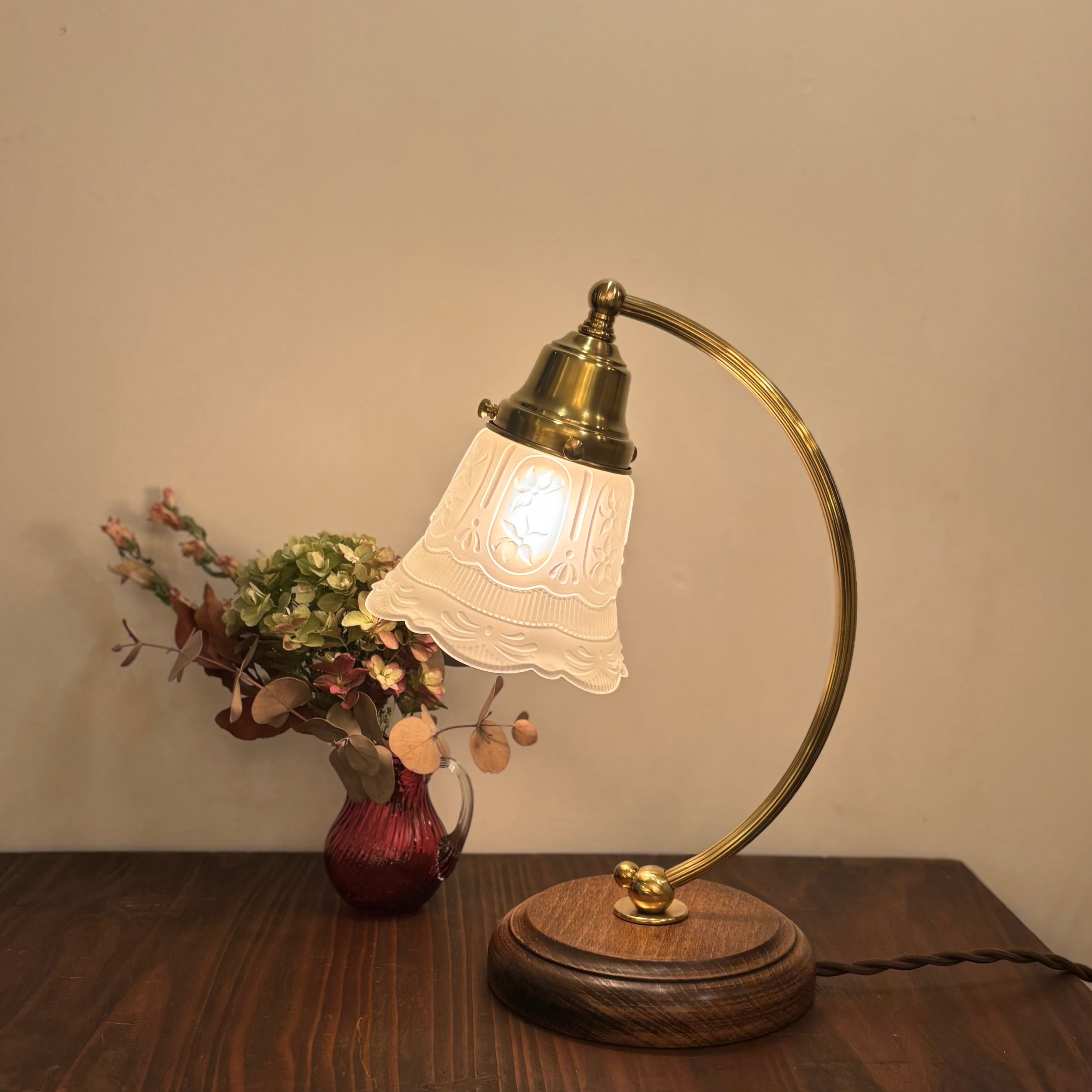 オリジナルの弓形の器具と組み合わせたテーブルランプです。