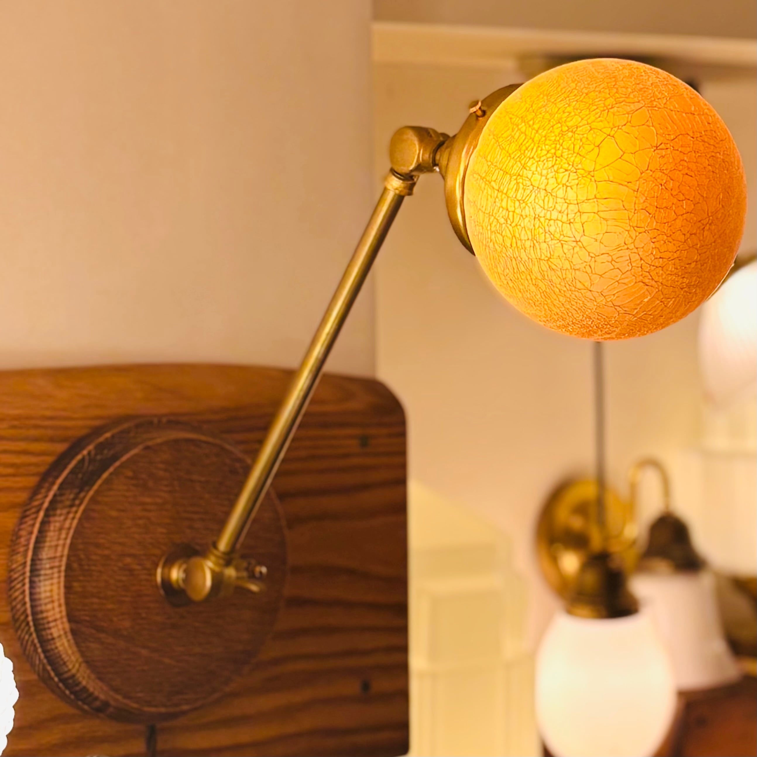 シェードはガラスの厚みのあるアンバーサテンガラスのクラックガラスを合わせました。