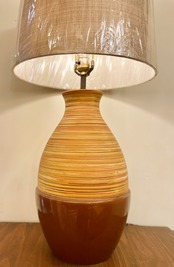 大きな陶器のビンテージランプに麻のシェード(新品)を合わせました。