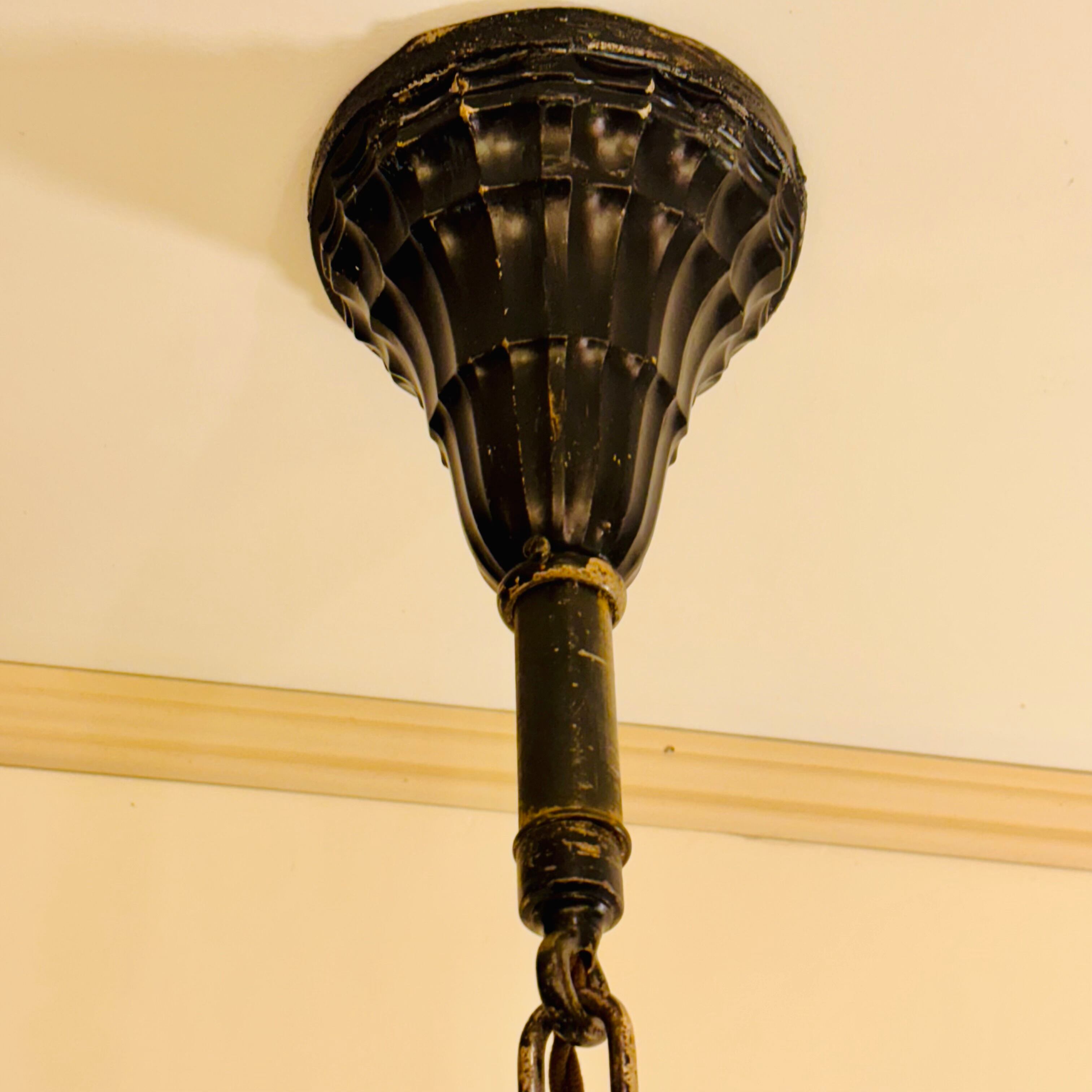 1930s-40sくらいのアイアンシャンデリアに焦げ茶色のツイストコードを付けました。