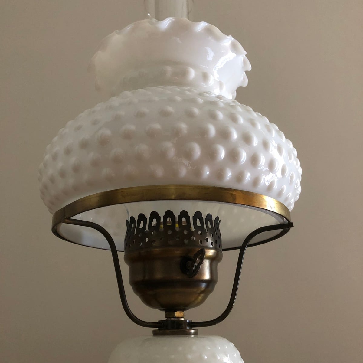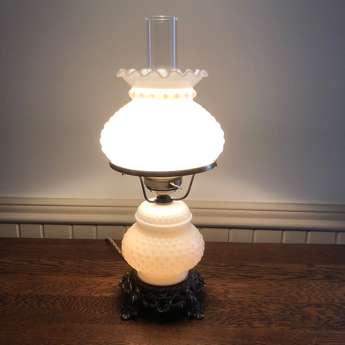 Vintage Hobnail Milk Glass Hurricane Lamp