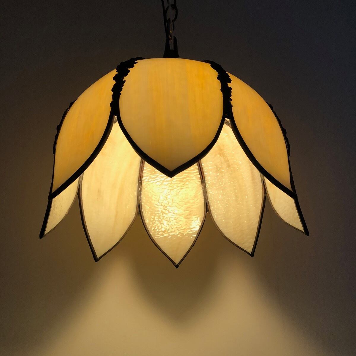 ヴィンテージ スラグガラス チューリップ ランプ ベージュ アメリカ ステンドグラス