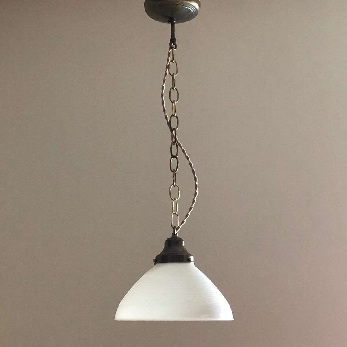 元々はトーチアーというフロアランプの上部についているものですが、ペンダントランプにすると良い感じになります。