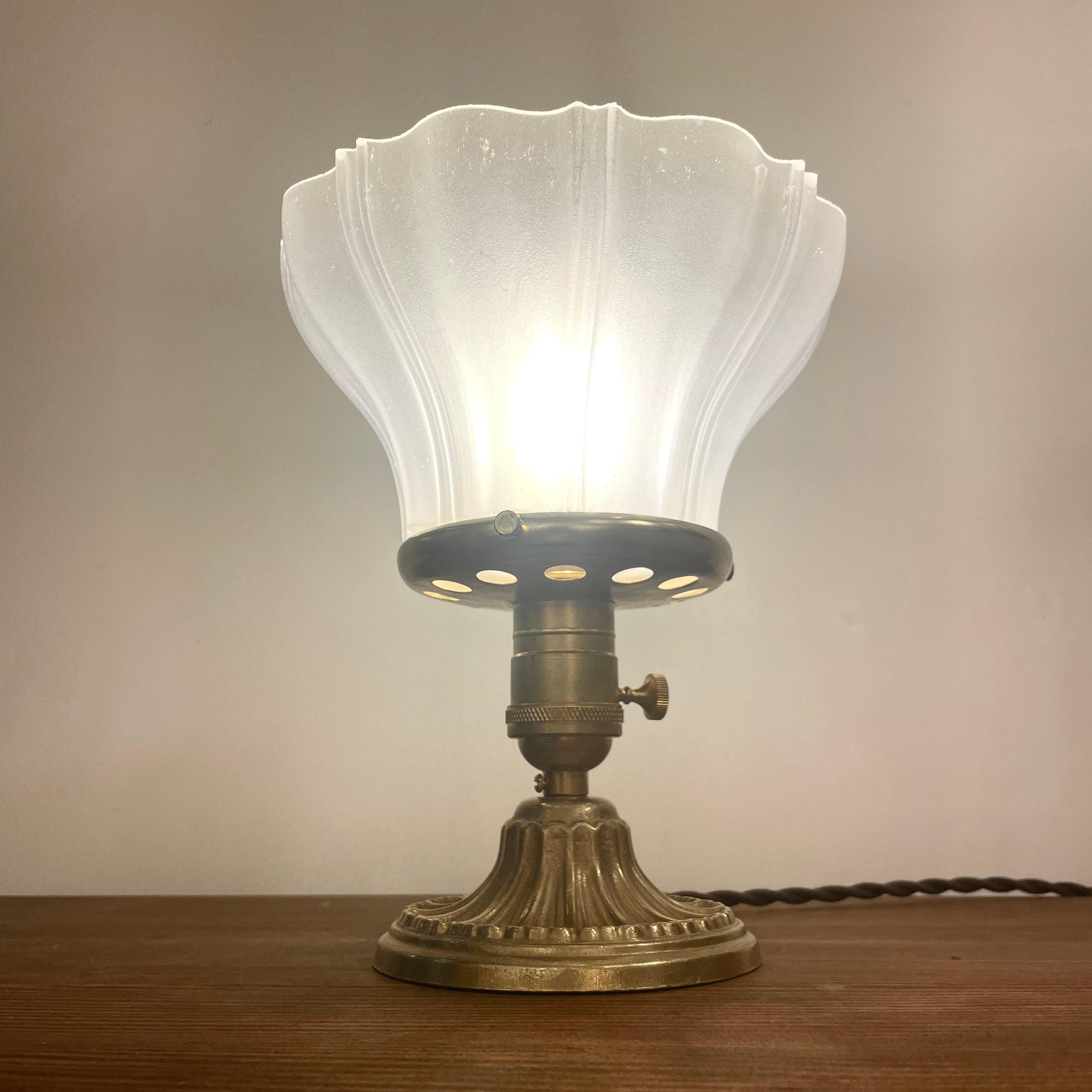 1920年代初頭の古いシェードと新品の真鍮の台座を組み合わせました。