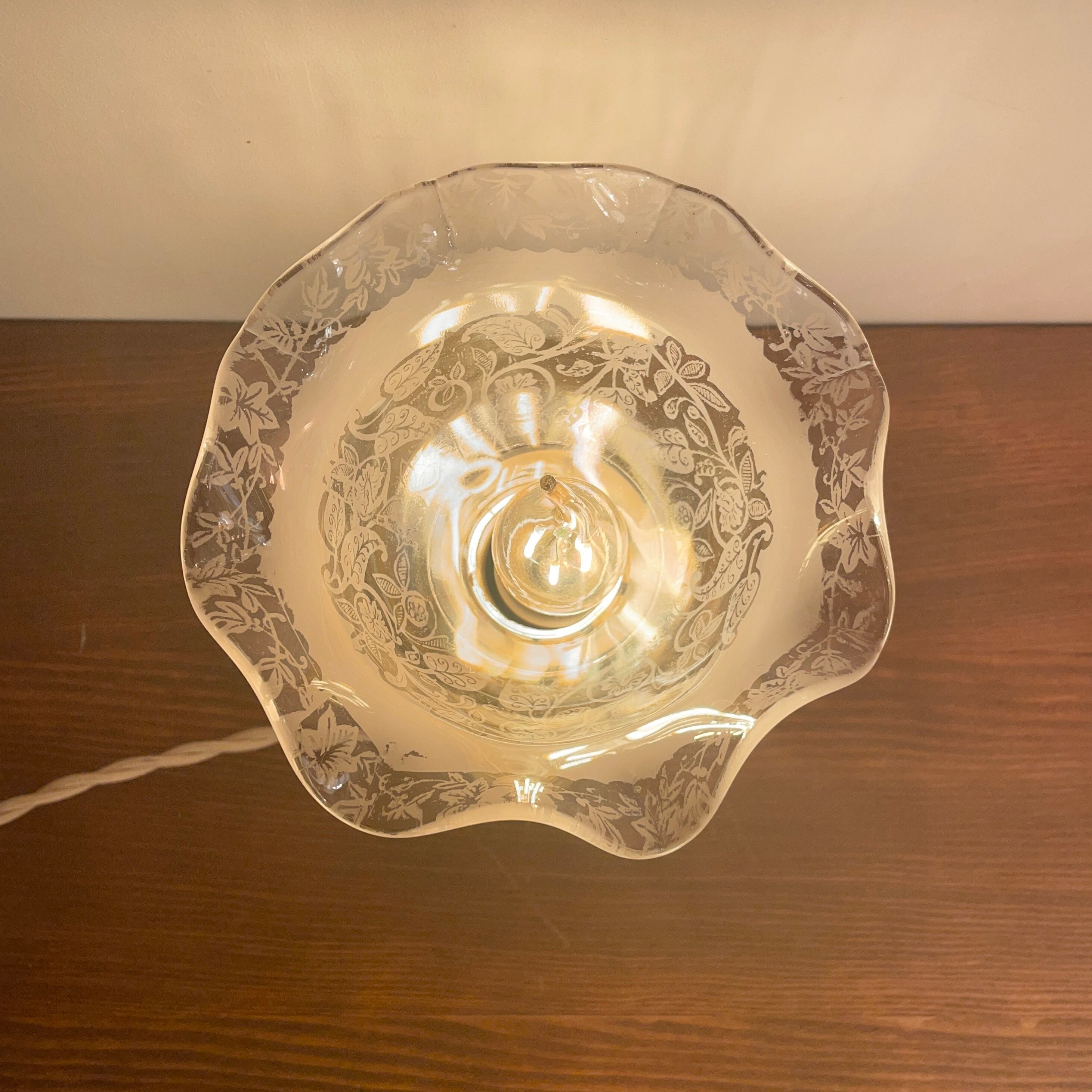 1900年代に作られたエッチングガラスのシェードに新品の真鍮台座と組み合わせました。