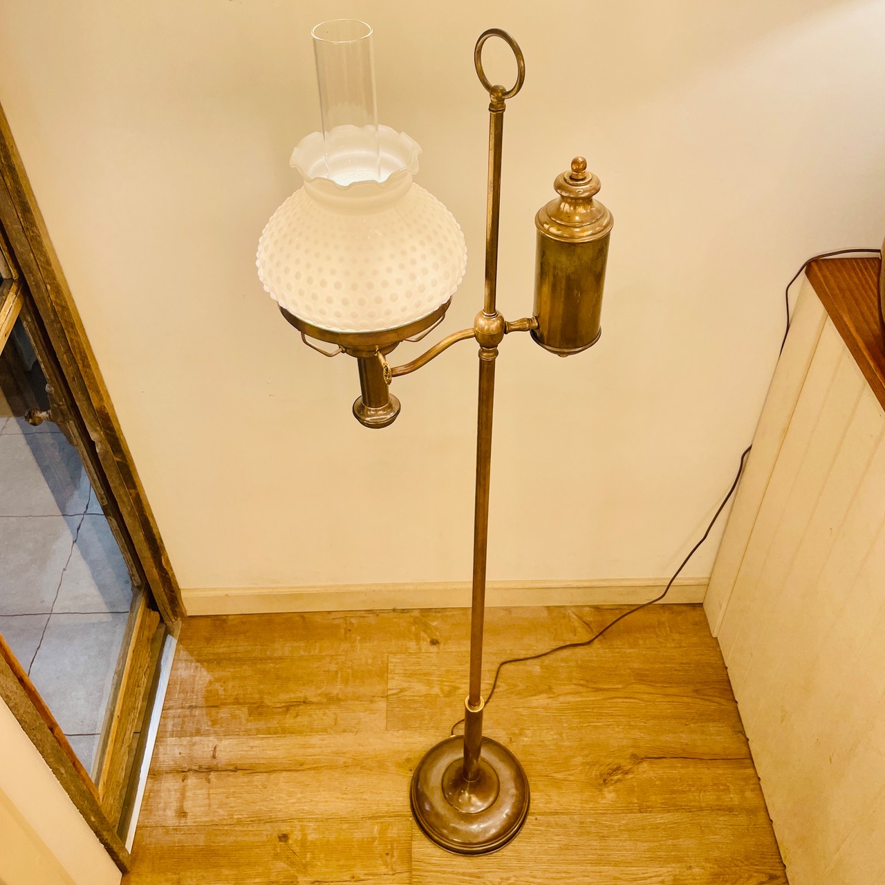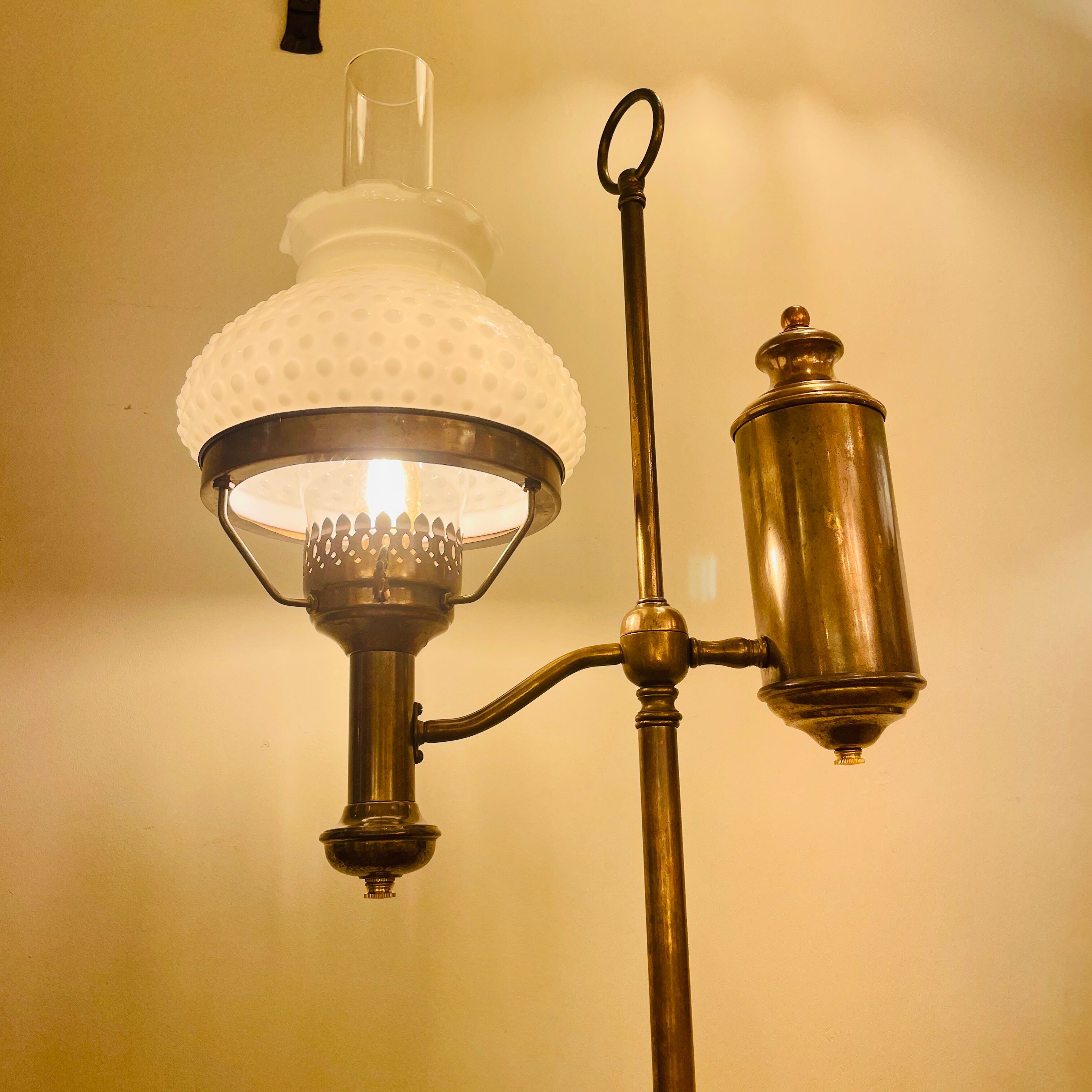 Oil Lamp Style Floor Lamp with Milk glass Hobnail Shade