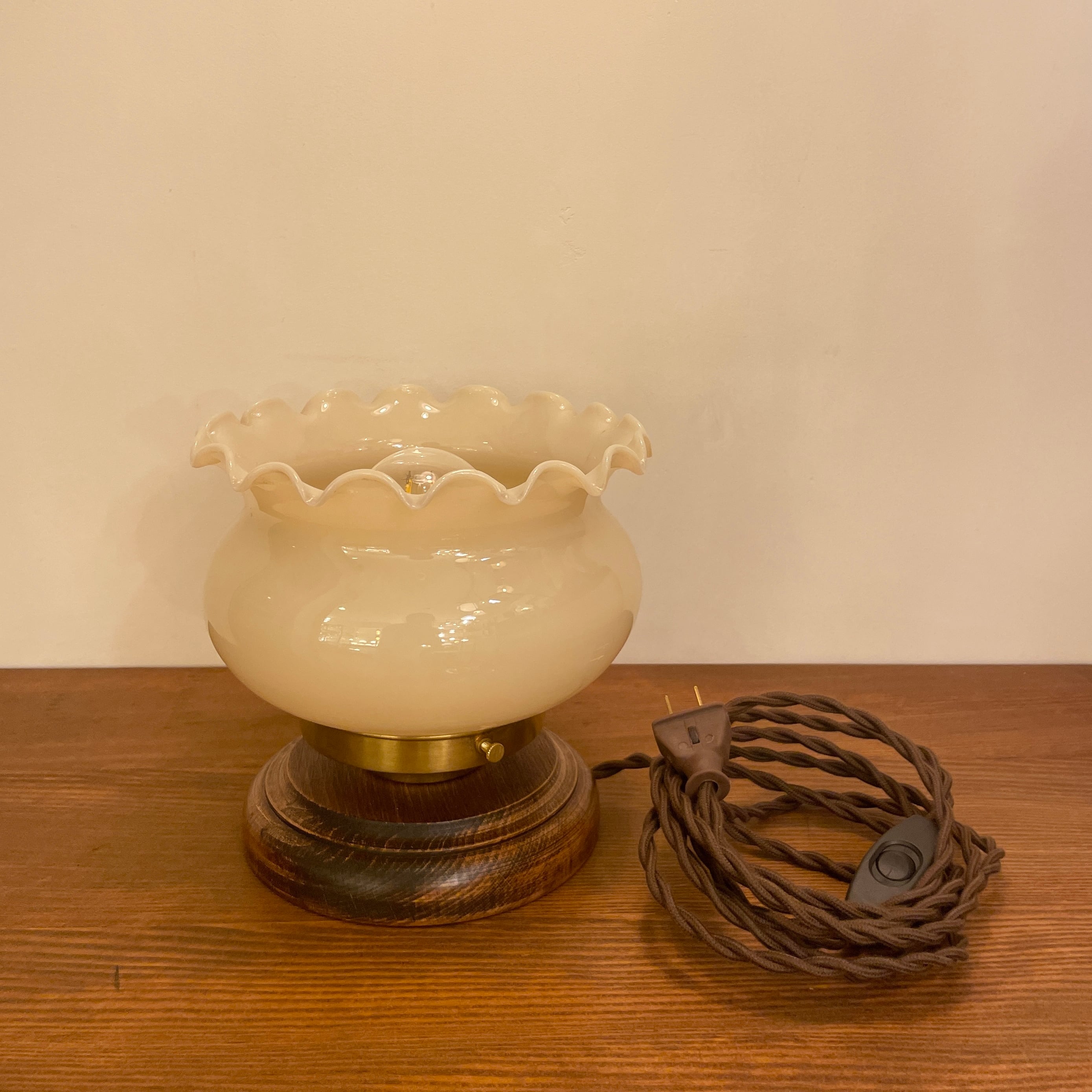 50〜60年代のものと思われるカスタードガラスのランプです。カスタードガラスのイエローベージュの色味が落ち着いた雰囲気です。