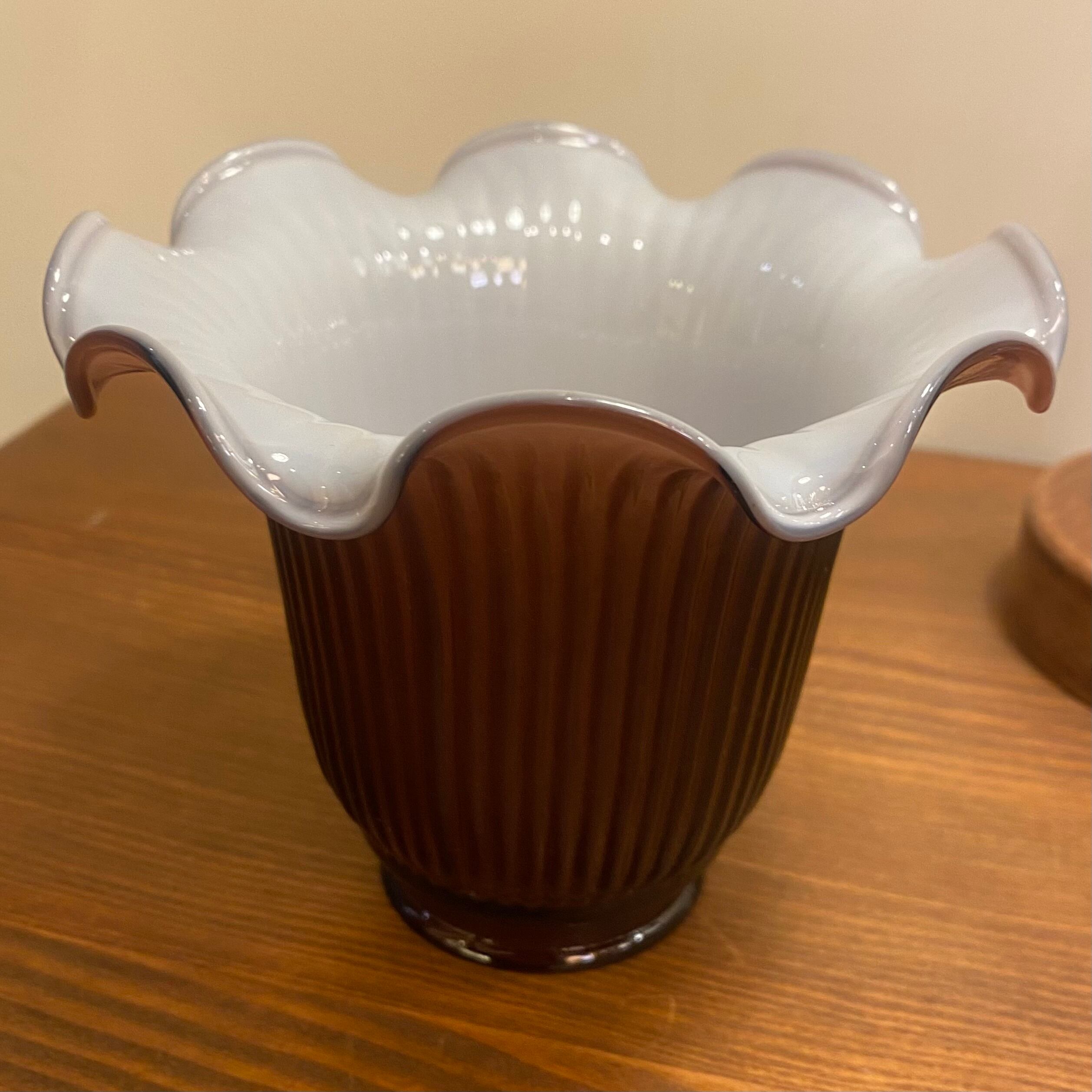 パープルの珍しいシェードです。手吹きガラスで作られたリブ模様が美しいです。