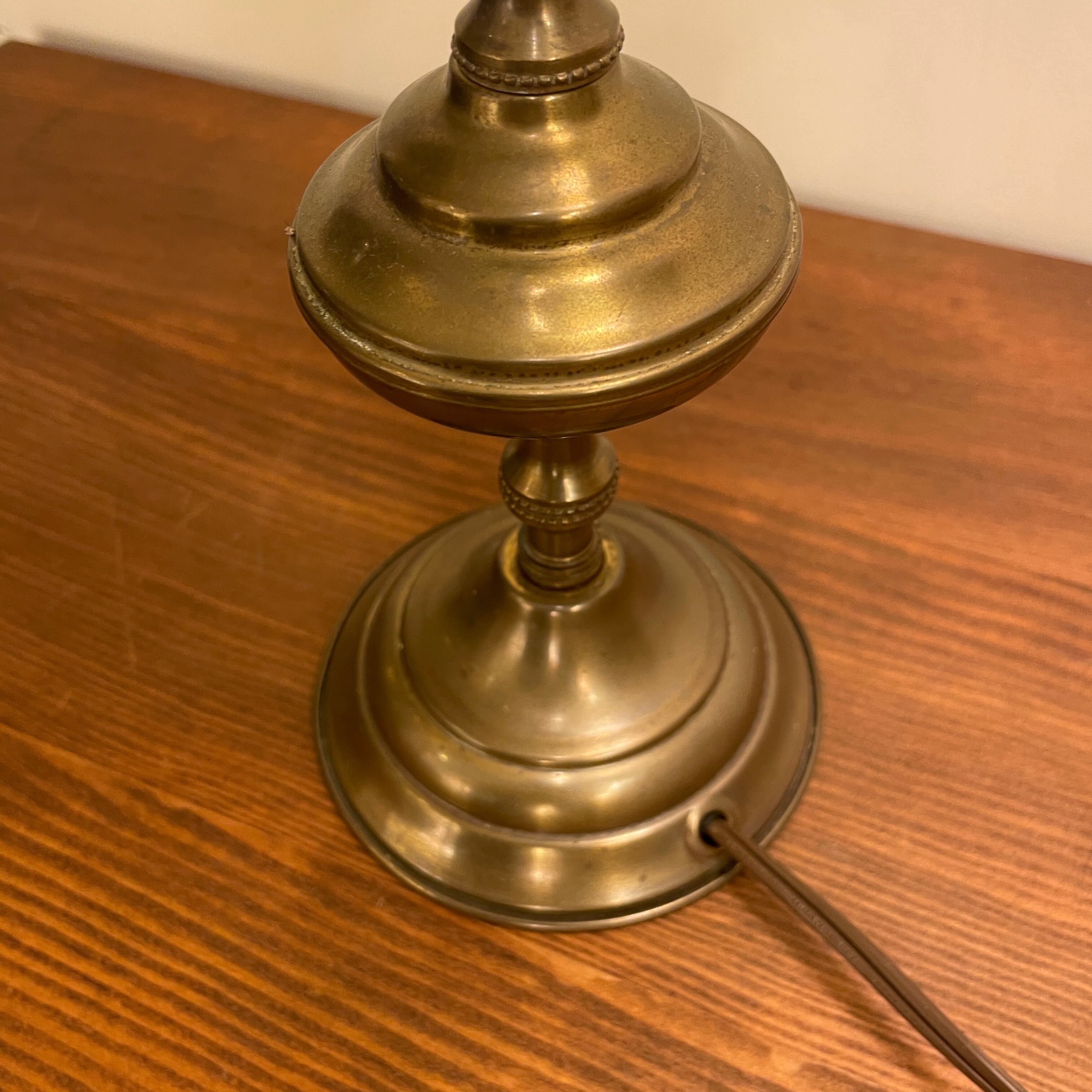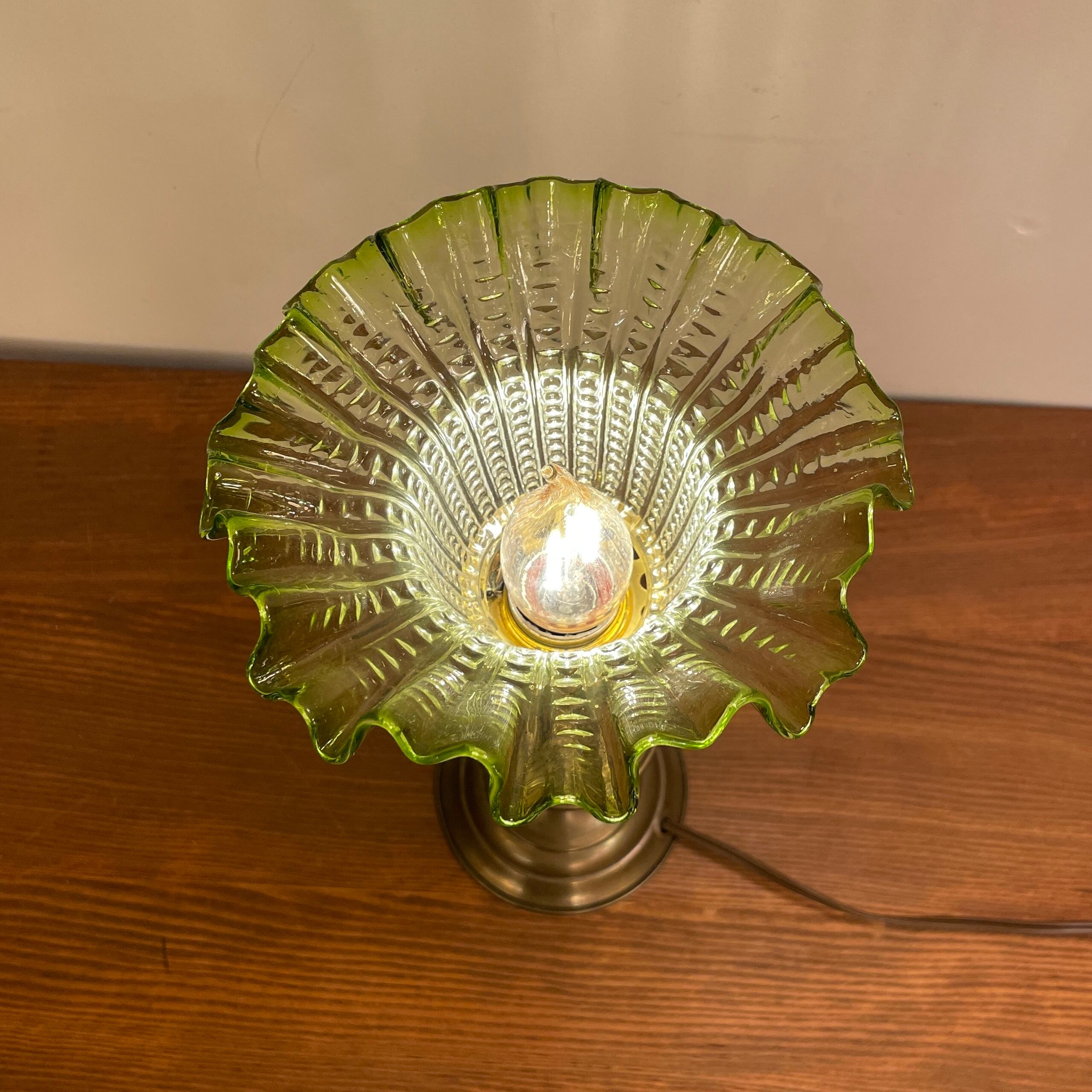 Green Vintage Frill Glass Shade Brass Lamp