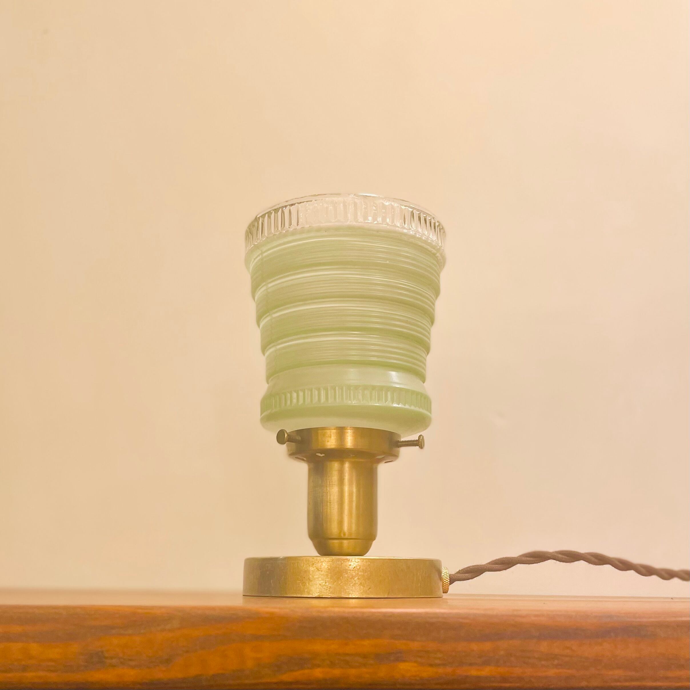 アメリカの古い淡いグリーンカラーのシェードに小ぶりな真鍮の土台を合わせました。